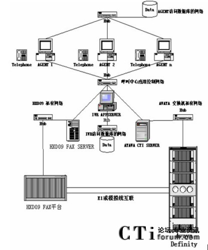 根據(jù)客服系統(tǒng)的容量,坐席多特點,一般都采用國外品牌交換機做為接入設(shè)備,用HXD09設(shè)備作FAX或IVR系統(tǒng)。客服的業(yè)務(wù)主要為語音和傳真。HXD09系統(tǒng)在傳真和語音處理處理上在國內(nèi)產(chǎn)品的技術(shù)和價格上都有巨大優(yōu)勢。