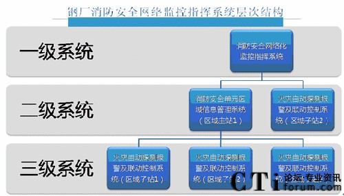 三級系統(tǒng)為“消防安全監(jiān)控指揮系統(tǒng)”,設(shè)在消防安全監(jiān)控指揮中心即新建廠區(qū)管控中心處,是新廠區(qū)的火災(zāi)等事故信息收集、匯總、處理的中心,其功能為:①自動獲取或通過火災(zāi)報警電話獲取二級系統(tǒng)的火災(zāi)信息(火災(zāi)發(fā)生的分廠名稱、具體工藝系統(tǒng)分區(qū)等),與二級系統(tǒng)進(jìn)行實時信息交互,并對二級系統(tǒng)實施指揮調(diào)度;②與廠區(qū)內(nèi)外的消防及其它搶險救災(zāi)機構(gòu)(醫(yī)療、交通、電力等)互聯(lián)互動;③與全廠級生產(chǎn)信息管理中心進(jìn)行信息交互和應(yīng)急聯(lián)動。