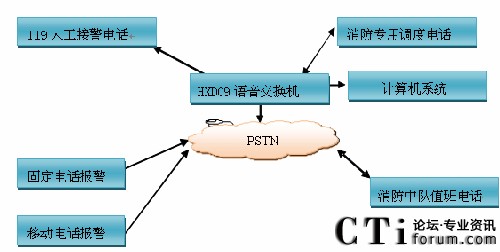 火警電話匯接至調(diào)度程控交換機,將火警電話通過CTI服務(wù)器提取主叫號碼并傳送到火警受理工作站。