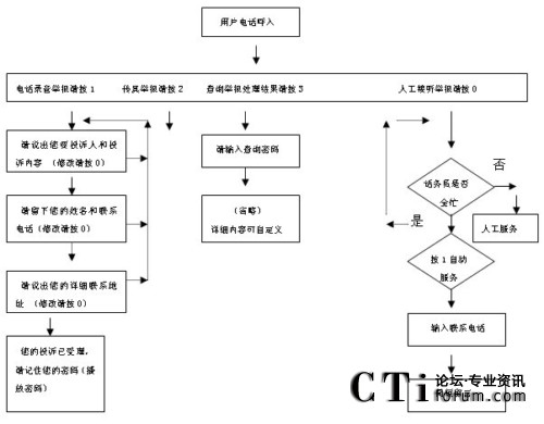 投訴人通過(guò)電話撥號(hào),進(jìn)入熱線系統(tǒng),在完成雙向交流后,系統(tǒng)自動(dòng)生成隨機(jī)專用密碼,告知投訴人。通過(guò)該密碼,投訴人可以隨時(shí)通過(guò)電話查詢受理部門對(duì)其投訴的受理反饋情況,受理職能部門可將受理反饋情況通過(guò)錄音及時(shí)提供給投訴人。