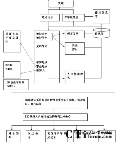 受理臺(tái)根據(jù)報(bào)警類別和報(bào)警地點(diǎn)等信息,判別是否是重點(diǎn)單位、重大事故等,如是則自動(dòng)查找相關(guān)的數(shù)據(jù)庫,調(diào)出預(yù)存的急救方案,最后由120指揮長(zhǎng)作出決策。