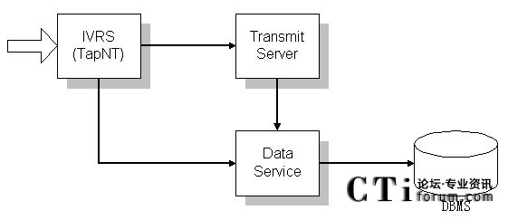 后臺程序使用Data Service 作為數(shù)據(jù)庫中間插件,TapNt(IVR)負責(zé)運行流程。TapNt(IVR)查詢數(shù)據(jù)要通過Data Service來進行。這項設(shè)置的目的在于使數(shù)據(jù)插件得到充分利用。當(dāng)話務(wù)量增多時,可以多開幾個Data