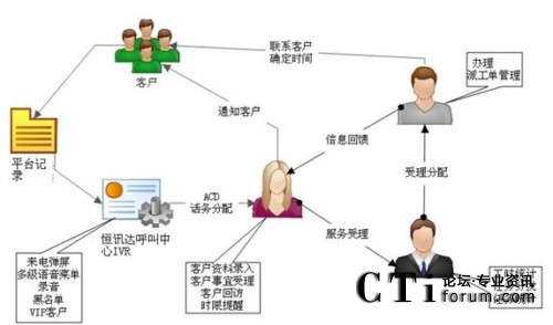 呼叫中心的建設,并不單純是一個電話交互的窗口,應該能提供功能完善的全面服務內(nèi)容,呼叫中心系統(tǒng)流程: