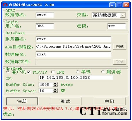 作為網(wǎng)絡(luò)版的客戶端,需配置服務(wù)器的IP地址及端口號(hào)(端口號(hào)為2638)