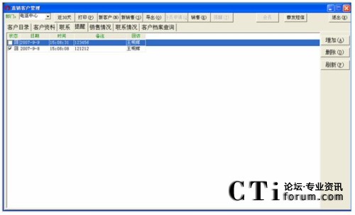 對(duì)于已經(jīng)回訪過(guò)的提醒,選定它并單擊已回,這樣它的狀態(tài)就會(huì)標(biāo)記為已回,再單擊一下查找,則剛才設(shè)定為已回的提醒,記錄的顏色變?yōu)榉奂t。