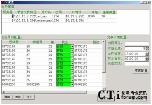 點(diǎn)擊新增來(lái)設(shè)置集團(tuán)電話,并點(diǎn)擊保存來(lái)保存集團(tuán)電話號(hào),集團(tuán)電話的呼入不算進(jìn)線。要修改某集團(tuán)電話號(hào),選定電話那一欄的對(duì)應(yīng)電話號(hào),直接修改就可以了。