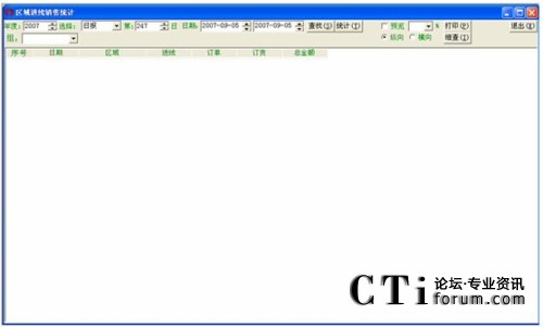 設(shè)定好相應(yīng)的時(shí)間,先點(diǎn)擊統(tǒng)計(jì),再點(diǎn)擊查找即可顯示各個(gè)區(qū)域的總進(jìn)線、總訂單、總訂貨數(shù)及總金額。