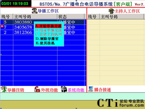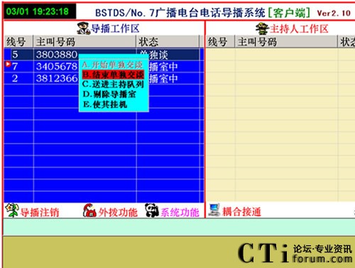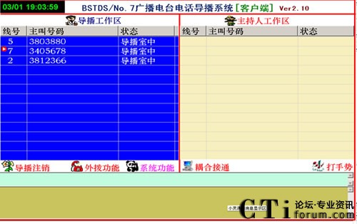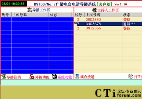 1、直播節(jié)目開播時,參與者打進電話,由導播把參與電話導入直播區(qū),這時直播區(qū)顯示參與者的電話號碼,主持人可以任意的選擇參與者進行通話或掛機。