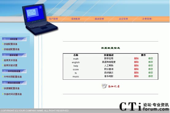 CTI控制是整個(gè)呼叫中心呼叫控制的樞紐。所有類型的呼叫控制都由CTI控制服務(wù)器進(jìn)行控制,CTI服務(wù)器將各種類型的呼叫進(jìn)行統(tǒng)一的控制,以便進(jìn)行統(tǒng)一ACD排隊(duì)、管理、統(tǒng)計(jì)和監(jiān)控。