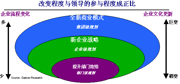 成功實施CRM的第一個關(guān)鍵是贏得企業(yè)的高層支持。高層支持的項目,或稱“一把手”工程,往往能夠推行得比較順利。在我們的實施中,最經(jīng)常項目牽頭人是客戶方負責運營的老總或總經(jīng)理。企業(yè)要應(yīng)用CRM系統(tǒng),不應(yīng)當僅僅是信息部門或銷售部門內(nèi)部的事情,而應(yīng)當是整個企業(yè)在高層領(lǐng)導(dǎo)的直接參與指導(dǎo)之下的多方協(xié)同調(diào)整,因為CRM涉及的是市場、銷售、服務(wù)等多個與客戶打交道的部門和流程。企業(yè)內(nèi)部的高層管理者必須承擔起項目負責人的角色,才能讓CRM實施順利地開展,才能完成部門之間的協(xié)同,才能實現(xiàn)企業(yè)內(nèi)部的文化轉(zhuǎn)變。高層參與的程度可以由下面的圖示說明: