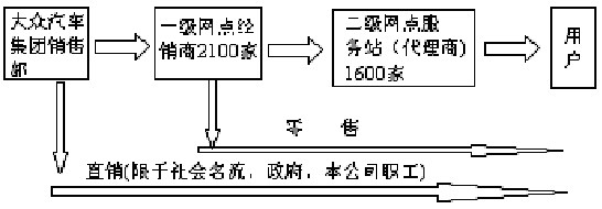 這樣的銷售體制正在逐步向國(guó)際市場(chǎng)的規(guī)范方式靠攏。國(guó)外的汽車銷售渠道普遍較短,無縱橫交錯(cuò)現(xiàn)象,非常簡(jiǎn)潔。(如圖中2-1)