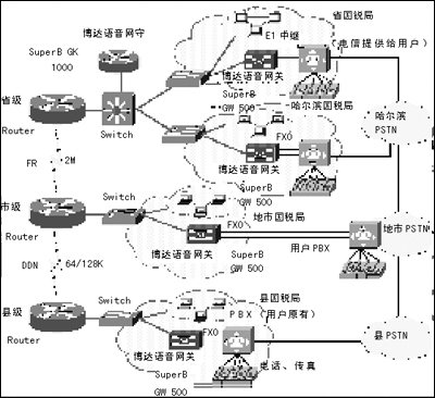 在業(yè)務繁多、長途通話量很大的情況下,黑龍江省國稅系統(tǒng)曾經考慮過采用各運營商推出的IP電話業(yè)務,雖然通信費用有所降低,但不是很理想。在這種情況下,他們希望用不多的投資,建設一套IP語音網絡系統(tǒng),大大降低通信成本。針對黑龍江省國稅局現有的網絡結構和帶寬使用情況,上海博達提出了適合黑龍江省政府現有網絡的IP語音網絡解決方案。