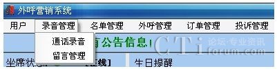 有錄音、監(jiān)聽(tīng)、發(fā)送傳真、接收傳真、語(yǔ)音識(shí)別(ASR)等功能,處理話路與人工坐席的連接、來(lái)話轉(zhuǎn)移、保留、坐席呼出等功能,用戶與人工坐席的通話過(guò)程可實(shí)現(xiàn)全程錄音。