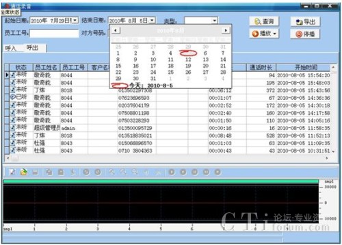 通過(guò)電話錄音監(jiān)聽(tīng)系統(tǒng),對(duì)所有來(lái)話進(jìn)行全程錄音,從而達(dá)到質(zhì)量監(jiān)督和防范糾紛的功能,并可以通過(guò)錄音系統(tǒng)讓優(yōu)秀服務(wù)代表的錄音實(shí)例成為案例學(xué)習(xí)的典范,同時(shí),通過(guò)錄音系統(tǒng),還可實(shí)時(shí)監(jiān)聽(tīng)服務(wù)代表的通話。