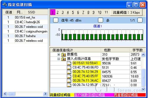 問題發(fā)現(xiàn):通過實(shí)時流量的統(tǒng)計(jì)分析,我們發(fā)現(xiàn)在信道6,AP數(shù)量10個,目前某AP接入終端數(shù)為16,對某些終端的服務(wù)質(zhì)量急劇降低,導(dǎo)致錯誤包過大。