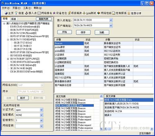 連接診斷功能實(shí)時分析顯示接入點(diǎn)同客戶端之間連接步驟的完成狀況,為分析網(wǎng)絡(luò)接入問題提供支持。