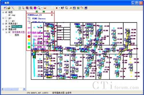 可以顯示GPS軌跡圖上的信號強(qiáng)度,載干比等參數(shù)覆蓋點(diǎn)圖及效果圖。