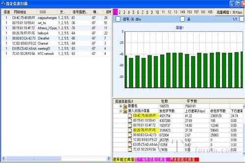 支持設(shè)備被動狀態(tài)下掃描802.11a/b/g/n所有信道,也可選擇信道進(jìn)行掃描。統(tǒng)計(jì)匯總AP、STA、AdHoc等設(shè)備的數(shù)量,統(tǒng)計(jì)網(wǎng)絡(luò)中SSID網(wǎng)絡(luò)數(shù)量,能提供信道的信號強(qiáng)度、噪聲、信噪比、干擾參數(shù)指標(biāo)等信息。