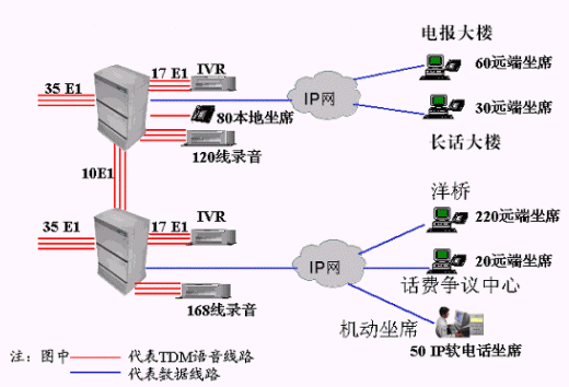 E1數(shù)字中繼(2100路),提供34E1(1020路) IVR自動語音服務(wù),510個人工坐席其中本地80個,遠端360個,機動座席50個。提供全程錄音跟蹤。