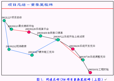 中國網(wǎng)通集團(tuán)的"中國網(wǎng)通集團(tuán)大客戶信息管理分析及一站服務(wù)系統(tǒng)"(以下簡稱網(wǎng)通總部CRM項(xiàng)目)的合同簽約儀式在這里舉行,合同總額約為人民幣3000萬元。而作為合同執(zhí)行方的是HOLLYCRM(合力金橋軟件)公司,在一個(gè)月前才從北京合力金橋系統(tǒng)集成公司拆分出來。HOLLYCRM的總裁曲道俊先生在拿到這份合同時(shí)輕輕松了一口氣,用艱苦卓絕、峰回路轉(zhuǎn)、跌宕起伏等等一系列字眼來形容這連續(xù)4個(gè)月的應(yīng)標(biāo)過程決不為過,畢竟所有的努力并沒有白費(fèi)。但曲道俊先生并沒有完全沉浸在這種商場角逐取勝的快樂當(dāng)中, 畢竟這么大的一個(gè)項(xiàng)目要由一個(gè)前身為事業(yè)部的公司來完全承擔(dān)實(shí)施畢竟不是一件容易的事, 他馬上整理了思路, 撥通了負(fù)責(zé)這個(gè)項(xiàng)目實(shí)施的項(xiàng)目經(jīng)理盧毅的電話:半小時(shí)后我們辦公室見。