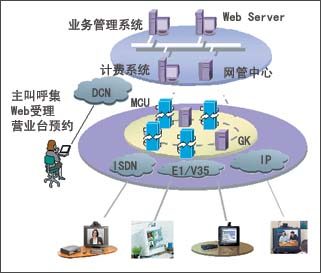 運(yùn)營支撐層與視訊交換層可以兼容各個視訊終端生產(chǎn)廠家提供的滿足標(biāo)準(zhǔn)的終端,在視訊實(shí)現(xiàn)層為電信運(yùn)營商的客戶提供多種方便的預(yù)約手段,并推出“主叫呼集”功能,使用戶能夠方便地自主召集各種視訊業(yè)務(wù)。“一卡多號”方便用戶付費(fèi)、使用;全面的級連MCU主席控制能力使用戶能靈活操縱視訊業(yè)務(wù)的進(jìn)行。“主叫呼集”、“一卡多號”等功能的提供,使復(fù)雜的視訊業(yè)務(wù)真正成為電信運(yùn)營商滿足大客戶、適應(yīng)電信市場發(fā)展的“傻瓜化”業(yè)務(wù)。