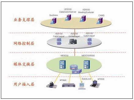 網絡控制層包括Quidway XE6100 GateKeeper和Quidway XE6100 GK Manager。