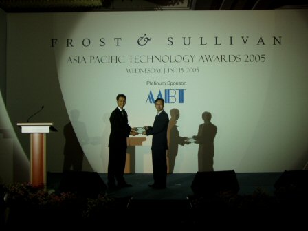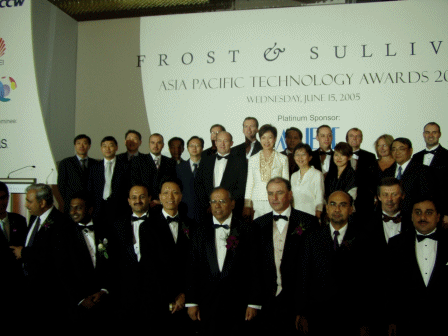 新加坡CommunicAsia2005展會(huì)期間,2005年6月15日晚—新加坡香格里拉飯店燈火輝煌,全球通信行業(yè)的精英公司濟(jì)濟(jì)一堂,共同見證了亞太地區(qū)一年一度的Frost & Sullivan亞太區(qū)技術(shù)大獎(jiǎng)的頒獎(jiǎng)禮的盛況。晚會(huì)期間共產(chǎn)生了6項(xiàng)運(yùn)營商獎(jiǎng)項(xiàng)和11項(xiàng)供應(yīng)商獎(jiǎng)項(xiàng)。