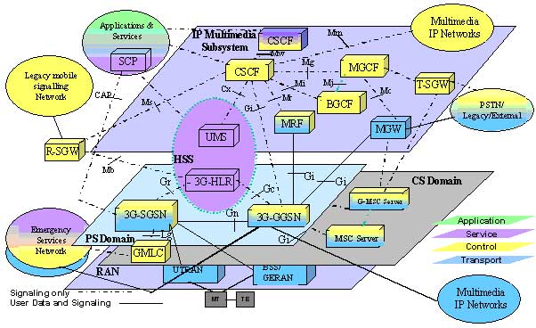 如圖1所示,傳輸服務運行在IMS的信令層(CSCF等)、承載服務運行在承載層(SGSN和GGSN)。這樣做的好處:可最小化各層之間的依賴性;方便新的接入網(wǎng)接入;接入的無關性,一種應用可以通過多種接入類型在UE(用戶終端)上運行。