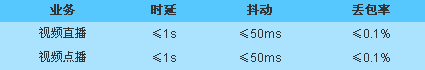 除去應用系統、服務器、終端的響應,編解碼要求,對承載網端到端QOS要求: