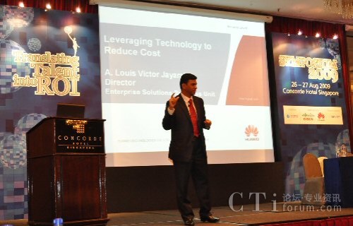 本次CCAS Symposium 2009的主題為“Translating talent into ROI”,著重探討在目前金融危機(jī)的陰霾下,如何通過(guò)精細(xì)化的運(yùn)營(yíng)管理,將人力資源或人才轉(zhuǎn)換成實(shí)實(shí)在在的投資回報(bào)率。華為資深專家Louis”做了”Leveraging
