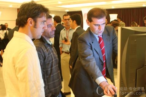 市場工程“City Widget”也是本次展會當中的一大亮點。“City Widget”將政府信息、政務(wù)溝通搬上了手機,從此市民與市長溝通更加便利!其主要功能包括了城市/政府黃頁、市長熱線和城市新聞。此項目涉及政府形象和施政理念,Castellar市市長Ignasi先生極為關(guān)注,興致勃勃地觀看了業(yè)務(wù)演示,連連稱贊道:“Good job!I like it very much!”,并計劃10月20號左右在Castellar市做新聞發(fā)布和業(yè)務(wù)推廣會!