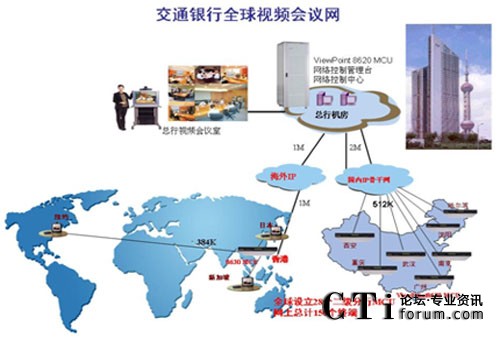 華為視訊構(gòu)建的視頻會(huì)議系統(tǒng)覆蓋交通銀行全國(guó)27個(gè)省級(jí)分行和全球6個(gè)分支機(jī)構(gòu),采用三級(jí)組網(wǎng)模式。系統(tǒng)主會(huì)場(chǎng)在上海交通銀行總部。系統(tǒng)采用IP組網(wǎng),總行采用一套ViewPoint8620視訊交換平臺(tái)作為頂級(jí)平臺(tái)、各省分行及海外分行采用28套ViewPoint8630 IP視訊平臺(tái)作為二級(jí)平臺(tái),各地市分行按當(dāng)?shù)氐臉I(yè)務(wù)需求或采用會(huì)議電視終端掛在省分行的二級(jí)MCU下,或放置一套ViewPoint8630 MCU組建本地市分行的三級(jí)視頻會(huì)議網(wǎng)絡(luò),并有效接入總行的MCU平臺(tái)。網(wǎng)上目前總計(jì)有150套終端,實(shí)現(xiàn)了交通銀行總部和全球所有分支機(jī)構(gòu)之間的遠(yuǎn)程會(huì)議、視頻溝通、遠(yuǎn)程培訓(xùn)等功能。在節(jié)約寶貴時(shí)間、精力和金錢(qián)的同時(shí),提高了銀行管理和決策的效率。