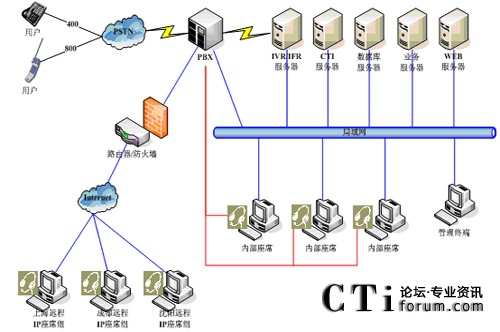 呼叫中心是一種基于CTI技術(shù)、充分利用通信網(wǎng)和計(jì)算機(jī)網(wǎng)的多項(xiàng)功能集成,并與企業(yè)連為一體的一個完整的綜合信息服務(wù)系統(tǒng),利用現(xiàn)有的各種先進(jìn)的通信手段,效地為客戶提供高質(zhì)量、高效率、全方位的服務(wù)。表面上看,呼叫中心是企業(yè)在最外層加上了一個服務(wù)層。實(shí)際上,它不僅對企業(yè)的外部用戶具有服務(wù)功能,同時也為企業(yè)內(nèi)部的管理、服務(wù)、調(diào)度、增值起到非常重要的協(xié)調(diào)作用。