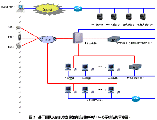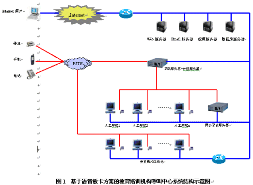教育培訓(xùn)機(jī)構(gòu)呼叫中心系統(tǒng)是一個(gè)集合電話語音、計(jì)算機(jī)網(wǎng)絡(luò)、數(shù)據(jù)庫等技術(shù)的綜合信息服務(wù)平臺,主要由自動(dòng)語音應(yīng)答系統(tǒng)、人工座席和數(shù)據(jù)庫系統(tǒng)三部分組成。