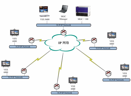 本系統(tǒng)共設(shè)置1個控制中心,26個視頻會議會場,其中1個主會場,25個分會場,還包括各領(lǐng)導(dǎo)辦公室共計20個。共采用POLYCOM VSX