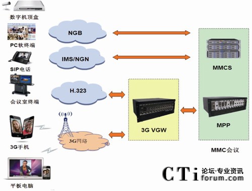 鑒于傳統(tǒng)視頻會議只能在固定地點、專用線路,通過專用設(shè)備召開語音和視頻會議的局限性。3G移動視頻會議解決方案實現(xiàn)了將會議拓展到整個互聯(lián)網(wǎng)和移動網(wǎng)絡(luò),用戶隨時隨地可以使用3G手機和PC,通過互聯(lián)網(wǎng)、移動網(wǎng)絡(luò)即可便捷地接入到現(xiàn)有會議系統(tǒng)中,真正實現(xiàn)跨越地域、空間的全方位會議。
