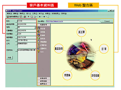 AltiGen可整合Web機制,Web為全世界Internet的標準介面,更是整合全球資源達無遠弗屆境界的功臣,同時企業(yè)主可在其上輕易開發(fā)或整合其他程式,更可整合Web跑單 (Work Flow)、訂單等功能,使用者可一邊與客戶通話,一邊在電腦螢?zāi)簧舷掠唵位蚍峙晒ぷ鳎?jié)省人工跑單作業(yè)時間,提升作業(yè)效率,同時對于跑單狀況的追蹤管理皆可在統(tǒng)一介面獲得整合,任何更新的進度都可第一時間掌握。