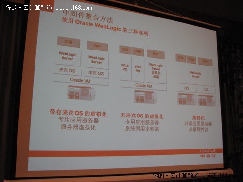 而甲骨文是關(guān)注公有云還是私有云呢?就如甲骨文“更多的企業(yè)最終將混合采用公有云和私有云”那樣,甲骨文的云計(jì)算策略是既支持公有云又支持私有云使客戶有選擇余地。不過(guò)喻思成也坦言,由于甲骨文關(guān)注企業(yè)市場(chǎng),可能更多的精力還是放在私有云的建設(shè)上。