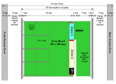 我們可以看到當(dāng)今市面上已有相關(guān)的零件商或系統(tǒng)商開發(fā)出14U或13U,12U的ATCA機(jī)箱。就ATCA機(jī)箱的型式來(lái)說(shuō)可以分為直立型插卡與橫向型插卡兩種類型。直立式插卡機(jī)箱的標(biāo)準(zhǔn)為14槽(參考圖一B),而橫向型機(jī)箱因受限于機(jī)箱高度,所以視其高度決定槽數(shù)的多少。