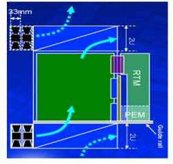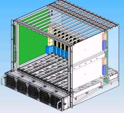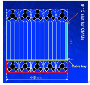 另外在機(jī)架內(nèi)的放置空間上,42U的標(biāo)準(zhǔn)機(jī)架里可以放3臺(tái)12~14U機(jī)箱,若將機(jī)箱降至10U則可以放置4臺(tái),這樣可以增加整體空間的利用率,所以有了10U機(jī)箱的設(shè)計(jì)需求。在各種不同高度的機(jī)箱設(shè)計(jì)中,風(fēng)扇散熱系統(tǒng)的放置位置、方式與總散熱效能能夠達(dá)到200*14=2800W,將會(huì)是ATCA機(jī)箱設(shè)計(jì)所要考慮的最重要因素之一,尤其是在10U的機(jī)箱設(shè)計(jì)上。