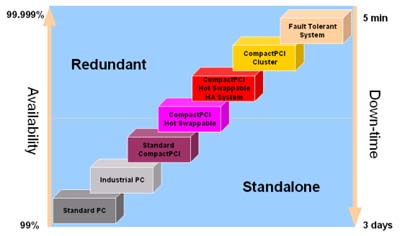 雖然CompactPCI的價(jià)格較VME和傳統(tǒng)工業(yè)計(jì)算機(jī)為高,但就整體考量而言,效價(jià)比仍是相當(dāng)優(yōu)異的。就幾乎無(wú)法接受系統(tǒng)損壞停機(jī)的電信產(chǎn)業(yè)而言,通訊設(shè)備供貨商(TEM)如何規(guī)劃一個(gè)價(jià)格合理、性能穩(wěn)定的高可用性系統(tǒng)呢?
