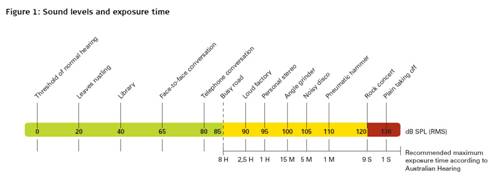 Recommended maximum exposure time according to Australian Hearing: 澳大利亞國家聽力中心建議的最大接觸時間