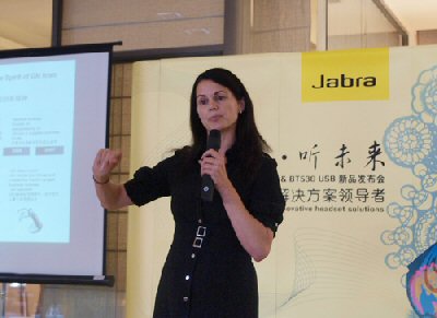 2008年10月21日,上海,來自丹麥的全球第一耳麥制造商GN大北歐在位于中山南路的老碼頭廣場(chǎng)內(nèi)為旗下新推出的兩款辦公耳麥產(chǎn)品—Jabra