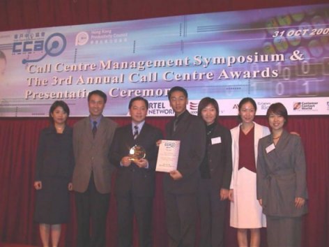 香港 2002年10月31日-在全球呼叫中心業(yè)享有盛譽(yù)的香港客戶中心協(xié)會日前宣布了2002年度各獎項(xiàng)獲獎名單。在今天下午舉行的第三屆年度呼叫中心頒獎典禮上,飛翱網(wǎng)訊成為年度最佳呼叫中心獎得主之一。這是繼去年以來,飛翱網(wǎng)訊連續(xù)第二年獲此殊榮。與此同時(shí),來自于飛翱網(wǎng)訊香港公司的業(yè)務(wù)主管,Gray Ho先生被授予了呼叫中心團(tuán)隊(duì)領(lǐng)導(dǎo)人優(yōu)勝獎。經(jīng)過專家評審團(tuán)的層層篩選,飛翱網(wǎng)訊在各個考核指針上均有不俗的表現(xiàn),并最終從其它數(shù)十家香港呼叫中心運(yùn)營商中脫穎而出。