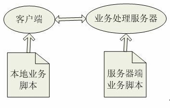 整個業(yè)務數(shù)據(jù)和業(yè)務處理都由XML配置管理,系統(tǒng)業(yè)務被分成本地業(yè)務邏輯和服務器端業(yè)務邏輯,客戶端通過提取本地業(yè)務邏輯腳本中的數(shù)據(jù)處理業(yè)務邏輯,業(yè)務處理服務器通過提取服務器端業(yè)務邏輯腳本中的數(shù)據(jù)訪問數(shù)據(jù)庫,并將數(shù)據(jù)庫返回結(jié)果發(fā)往客戶端。本地業(yè)務邏輯和服務器端業(yè)務邏輯之間的邏輯關(guān)系是通過一套配置腳本維護。如圖: