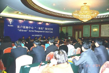 2003年2月21日,五洲賓館長江廳高朋滿座,由香港資深Call Center服務商易寶通訊服務有限公司主辦的電信行業(yè)客戶接觸中心"一體化"服務管理研討會在這里隆重舉行。全國各地的電信、移動、聯(lián)通、網(wǎng)通等運營商及易寶的合作伙伴共四十多家單位的Call