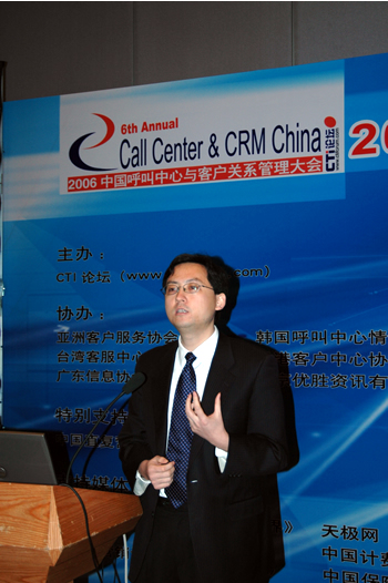 2006年4月3日至5日,2006中國(guó)呼叫中心與客戶關(guān)系管理大會(huì)在北京國(guó)際會(huì)議中心隆重召開,以下是電訊盈科、客戶聯(lián)絡(luò)中心業(yè)務(wù)高級(jí)產(chǎn)品經(jīng)理王實(shí)博士專題演講實(shí)錄: