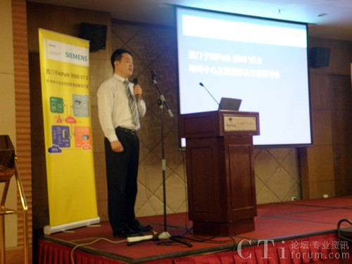 圖:福州華呼北區(qū)銷售總監(jiān)王本海介紹西門子HiPath3000 呼叫中心解決方案