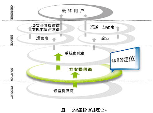 北極星軟件以技術(shù)領(lǐng)先見長。北極星軟件的iAfx ( Intelligent Application Frameworks ) 是一個融合語音、圖像、消息、多媒體數(shù)據(jù)的分布式通信應用架構(gòu),為業(yè)務處理和應用開發(fā)提供了全新的概念和良好的環(huán)境。iAfx?體系既充分考慮了對現(xiàn)階段運營商網(wǎng)絡和基礎構(gòu)架的支持,又兼顧了網(wǎng)絡和通信技術(shù)向下一代發(fā)展的必然趨勢。 基于iAfx?架構(gòu),北極星軟件開發(fā)的系列VoIP增值業(yè)務解決方案既能適應現(xiàn)有網(wǎng)絡環(huán)境,又能向下一代網(wǎng)絡(NGN)平滑過渡。