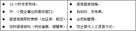 將以往的單位的人工熱線電話轉(zhuǎn)換為計(jì)算機(jī)24小時(shí)自動(dòng)熱線。有效解決服務(wù)態(tài)度、服務(wù)質(zhì)量等敏感問題。咨詢來電只須象以往撥打熱線電話,計(jì)算機(jī)中的語音卡就會(huì)自動(dòng)接通,完成95%以上的人工服務(wù)任務(wù),用戶就可以通過電話這種最簡單、最易用的方式快速獲取信息。